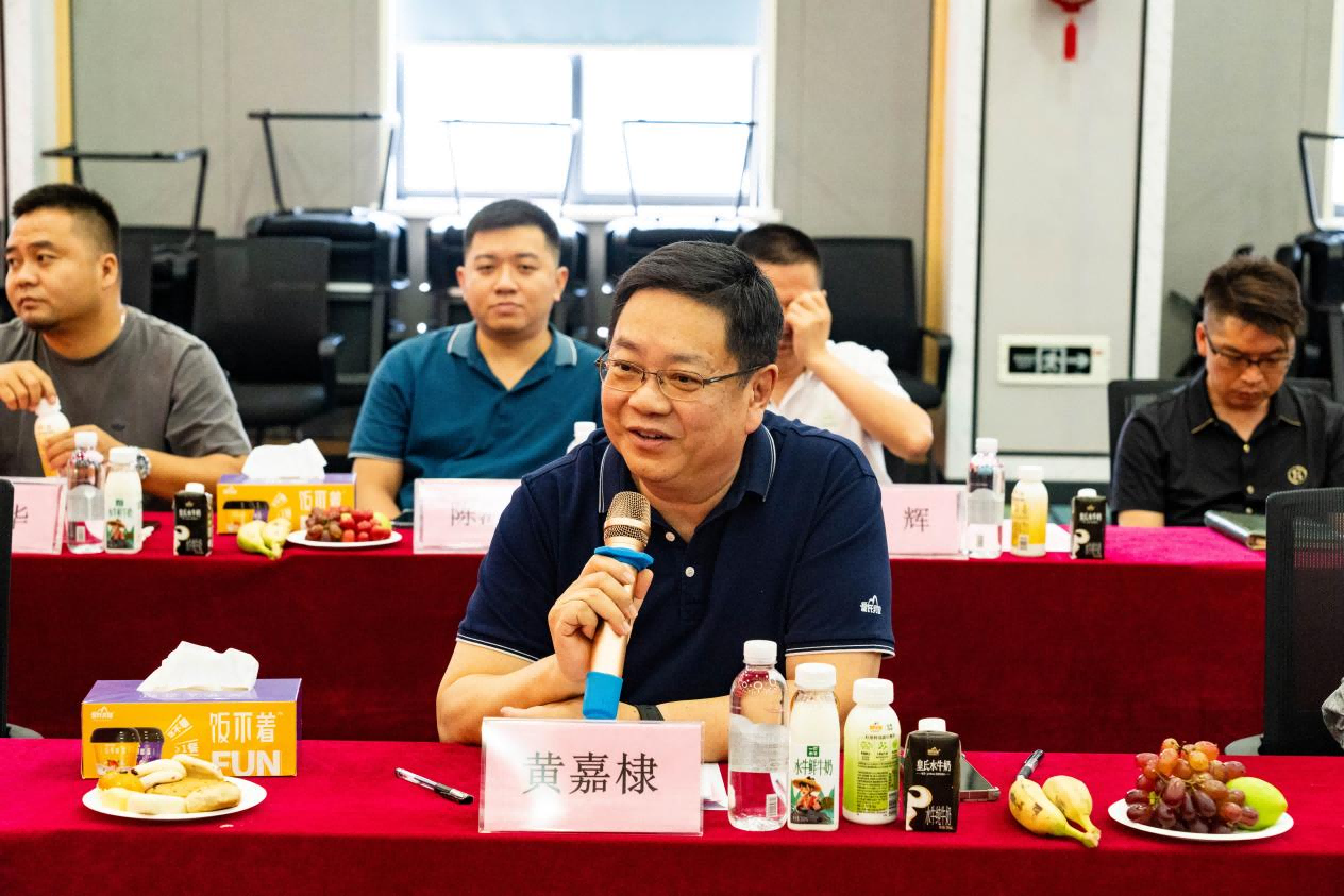 座谈会伊始,黄嘉棣董事长致欢迎词,首先向与会经销商介绍了皇氏集团2023年取得逆势增长的好成绩,同时介绍了公司水牛奶战略定位及上游奶水牛资源建设情况,皇氏巴基斯坦水牛无疫牧场已成为全求首个可以向中国出口高产水牛胚胎的牧场。紧接着,黄董事长指出大湾区作为皇氏战略布局的三大市场之一,公司高度重视皇氏乳业在该区域的品牌建设与市场销售,表示愿与在座经销商朋友共商发展大计,推动厂商共赢。