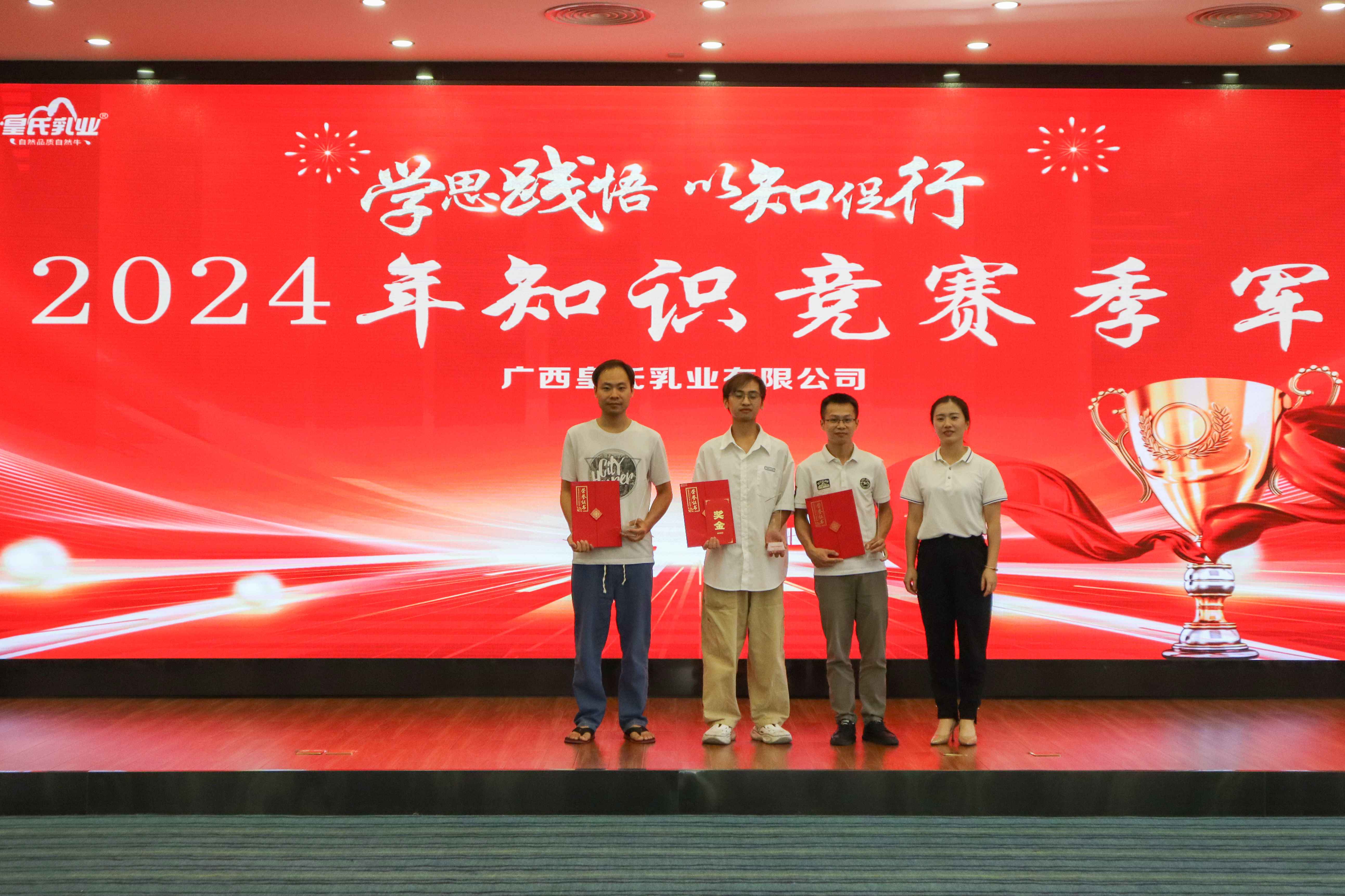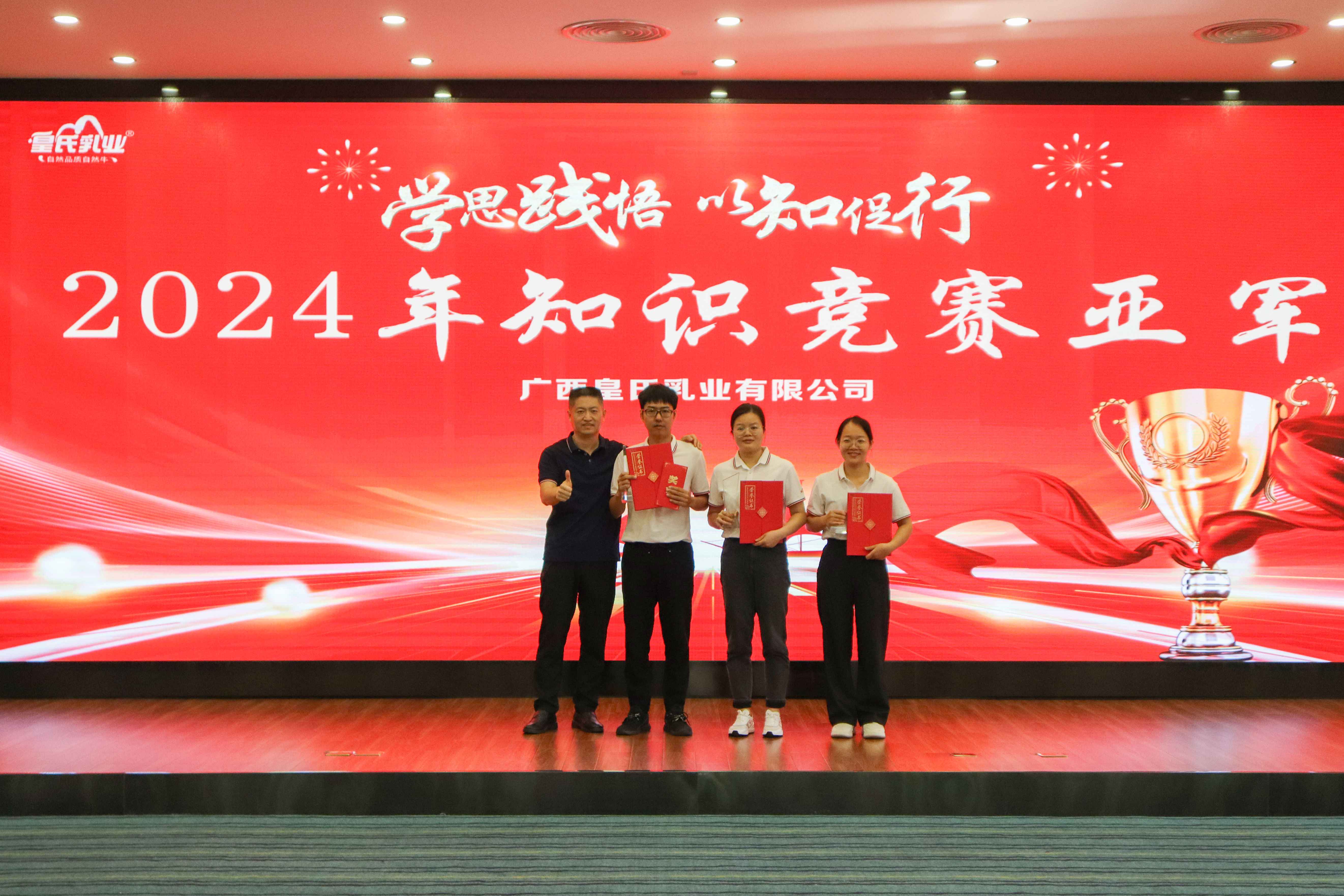 为进一步提升企业凝聚力、向心力和战斗力,增强公司员工对企业文化的认同感和归属感,以赛促学,打造争先创优、团结和谐、积极进取的良好环境,2024年7月25日,广西皇氏乳业在集团五楼多功能厅组织举办了2024年知识竞赛活动,活动邀请到了广西皇氏乳业有限公司总经理黄俊翔、生产总监王大兴、人力行政副总监唐艳玲等领导出席。